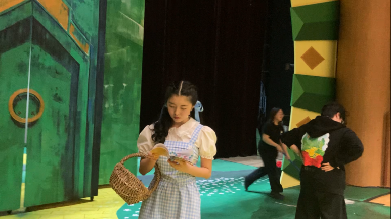 The show always started with my entrance. As the opening music was putting the audience under its spell, I was shaking with anxiety and excitement. I was standing backstage, in the stage left wing, praying. Then I would start to get into character, with Miss Gulch’s horrifying face filling my head. But I was so surprised by the fact that the nervousness just washes away as I soon as I enter and become Dorothy. It was so cool!